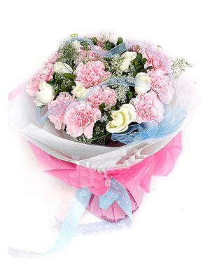 12 pink carnations, 9 white roses.